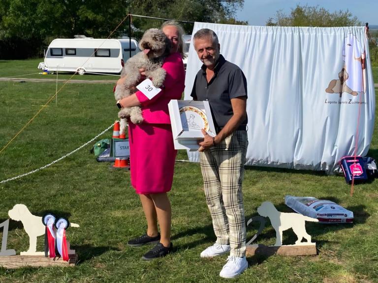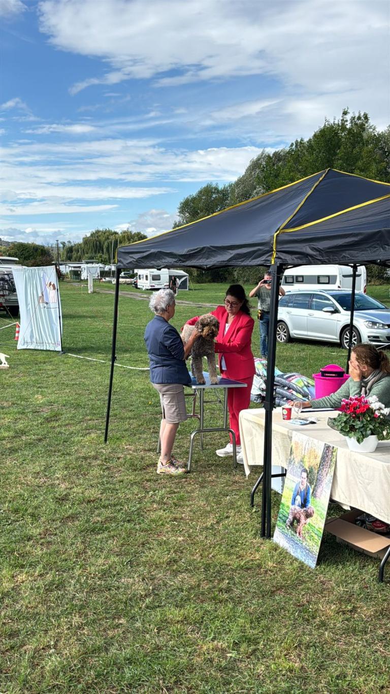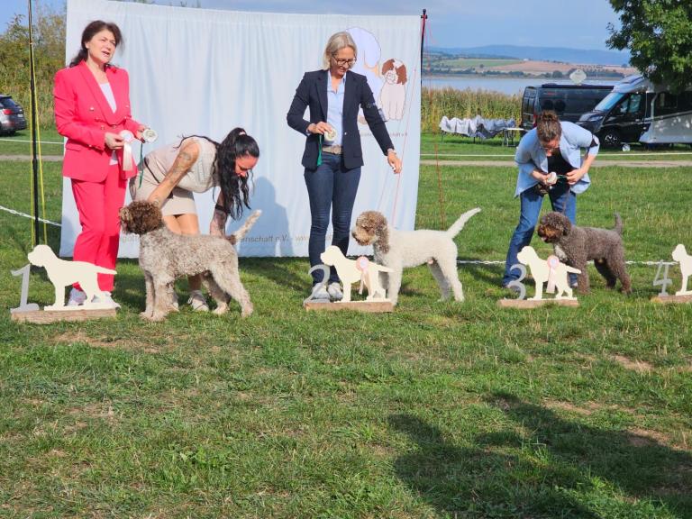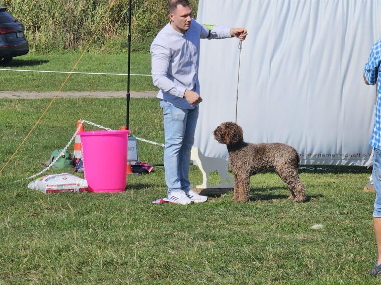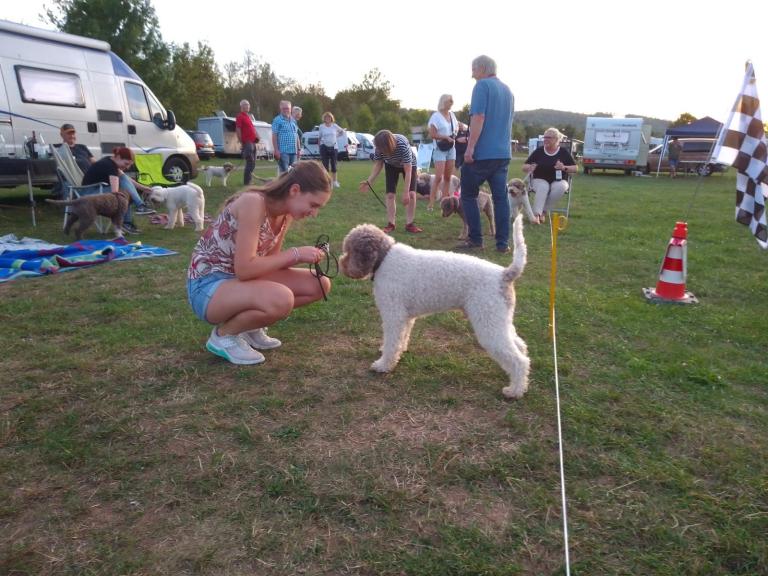 Der Raum während des Lagotto-Vortrags mit Domenico Di Matteo war gefüllt, indem auch diverse Urkunden des VDHs vergeben wurden. Das Lagotto-Rennen wurde durch die Hitze auf Samstag Abend verlegt und wurde ein riesiger Spaß - auch für unsere Zuschauer. Wir bedanken uns bei unseren Richtern Domenico Di Matteo & Palma Rodler für das professionelle Richten, Maxi Lobert als Ausstellungsleitung sowie bei allen Helfern vor Ort. Herzlichen Glückwunsch an all unsere Aussteller.