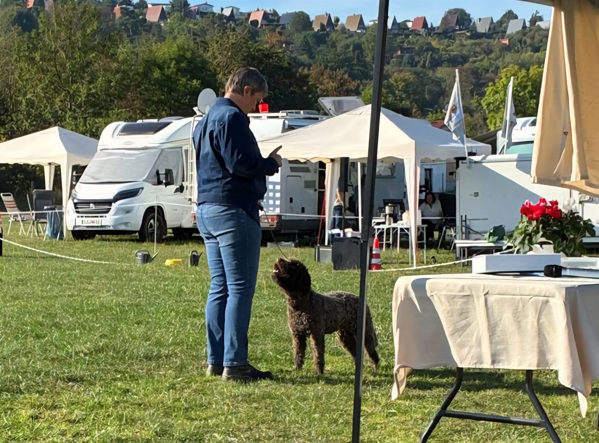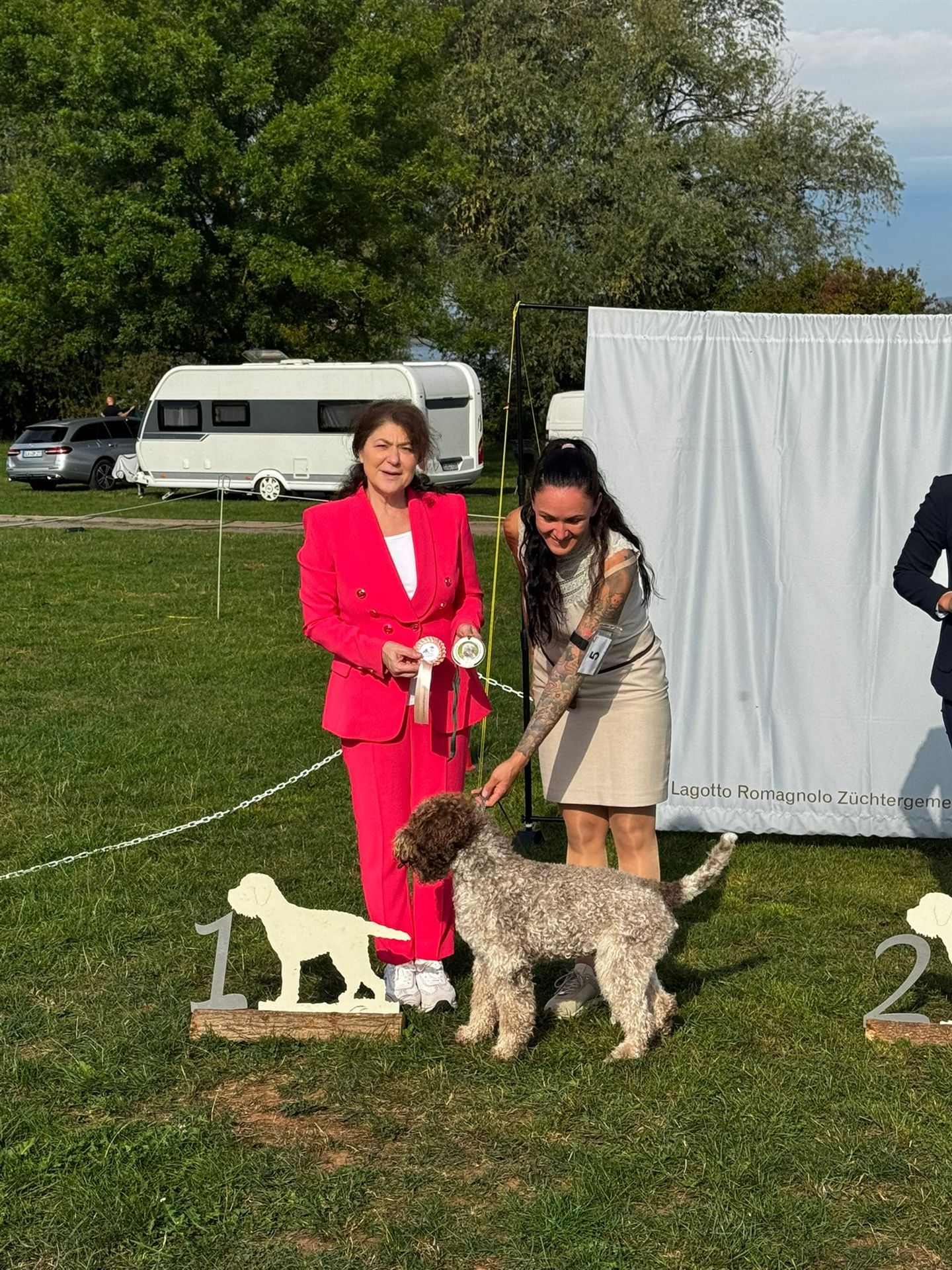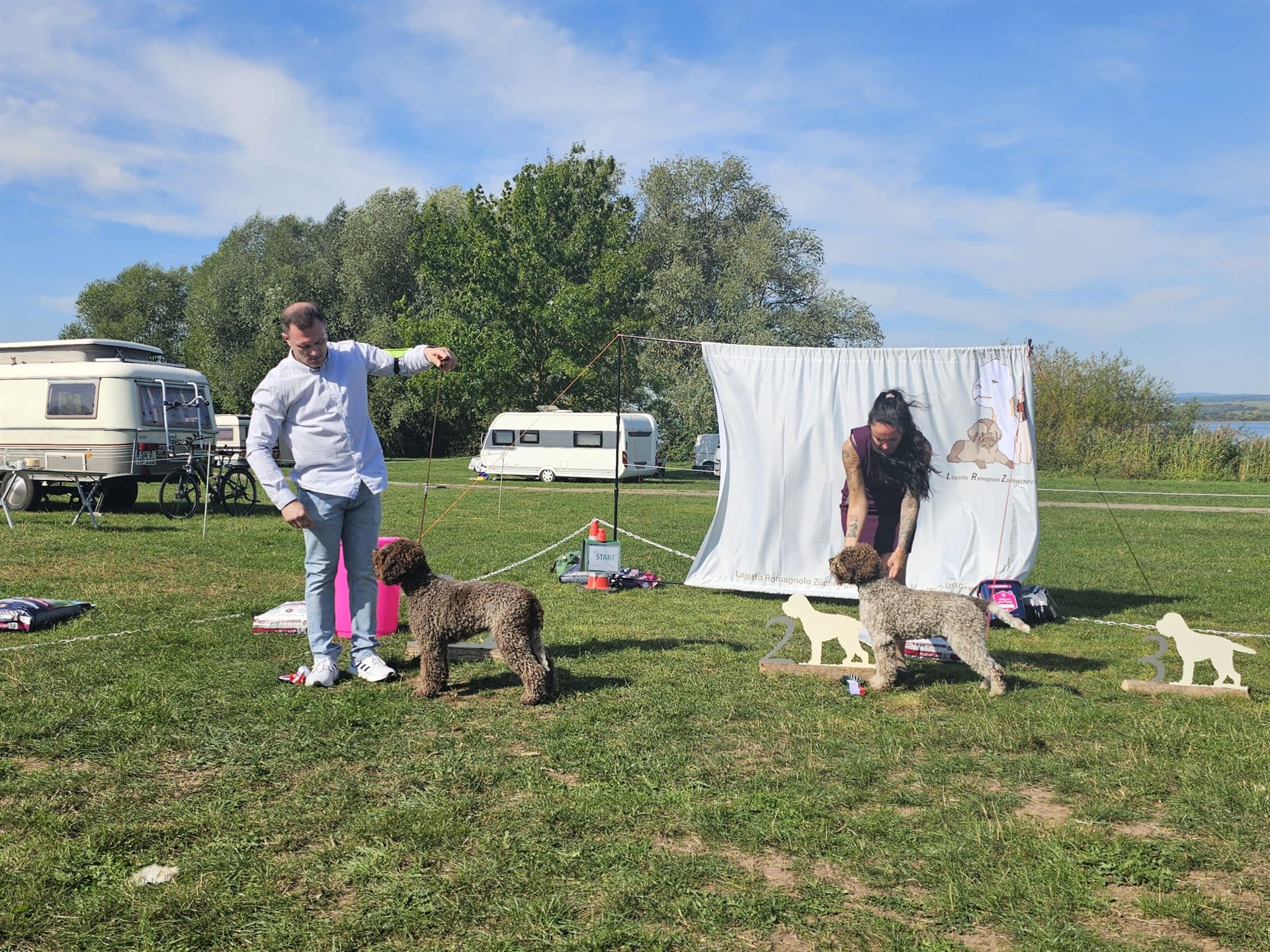 Der Raum während des Lagotto-Vortrags mit Domenico Di Matteo war gefüllt, indem auch diverse Urkunden des VDHs vergeben wurden. Das Lagotto-Rennen wurde durch die Hitze auf Samstag Abend verlegt und wurde ein riesiger Spaß - auch für unsere Zuschauer. Wir bedanken uns bei unseren Richtern Domenico Di Matteo & Palma Rodler für das professionelle Richten, Maxi Lobert als Ausstellungsleitung sowie bei allen Helfern vor Ort. Herzlichen Glückwunsch an all unsere Aussteller.