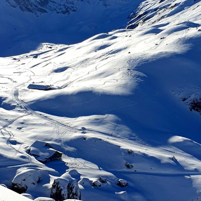 Bei einem wunderschönem Winterwetter fand am 22. Januar 2022 der Schnupperkurs Lawinenhund für Lagotti unter der Leitung von Pascal Utz, auf der Engstilgenalp in der Schweiz bei Adelboden statt. Nachdem wir uns selbstständig vom Parkplatz mit der Seilbahn auf den Arbeitsplatz befördert hatten, mussten wir die erste Herausforderung meistern: Wie binde ich einen Hund auf einem Schneefeld fest? Zum Einsatz kamen die vorbereiteten Schneidbretter mit Leinen, welche wir eingruben und uns dann gemütlich im Schnee eingerichtet haben.