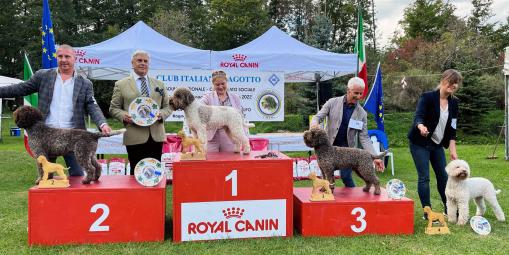 Jedes Jahr findet traditionell die größte Lagottoausstellung der Welt im Mutterland der Lagotti Romagnoli statt: Die Club-Ausstellung (Raduno) “ Bagno di Romagna“. Die Anzahl der Meldungen in diesem Jahr beliefen sich auf phänomenale 271 Teilnehmer!! Aussteller aus den Niederlanden, Belgien, Norwegen, Schweden, der USA und Australien konkurrierten um die begehrten Plätze auf dem Treppchen. Trotz der multikulturellen Unterschiede, war die Stimmung überall italophil.