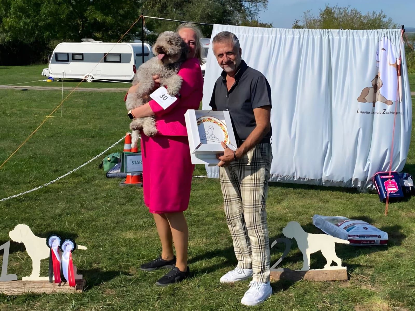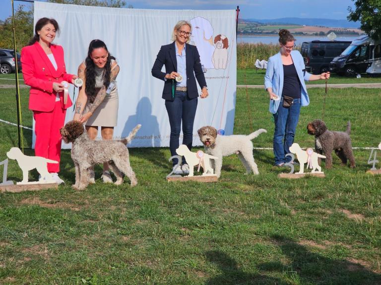 Der Raum während des Lagotto-Vortrags mit Domenico Di Matteo war gefüllt, indem auch diverse Urkunden des VDHs vergeben wurden. Das Lagotto-Rennen wurde durch die Hitze auf Samstag Abend verlegt und wurde ein riesiger Spaß - auch für unsere Zuschauer. Wir bedanken uns bei unseren Richtern Domenico Di Matteo & Palma Rodler für das professionelle Richten, Maxi Lobert als Ausstellungsleitung sowie bei allen Helfern vor Ort. Herzlichen Glückwunsch an all unsere Aussteller.
