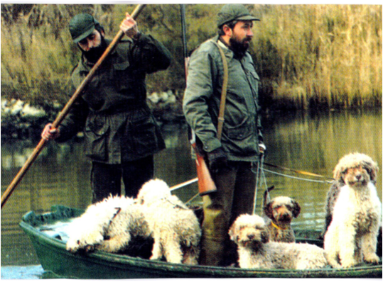 Eine weitere Tätigkeit der Vallaroli war die damals weniger bekannte aber umso erfolgreichere Trüffelsuche. Ihr unzertrennlicher Begleiter war der kleine Lagotto, Hüter des Bootes und des Hauses, ausgezeichneter Apportierer und Auffinder vor allem von Blasshühnern, währen Hunderte von Booten in den bekannten ?rastrelli" Schwärme von Tausenden dieser Vögel umkreisten und wahre Massaker anrichteten. Der Lagotto schwamm stundenlang, oft auch während sehr kalten Tagen wo er manchmal auch Eisschichten durchbrechen musste, um dann die erlegten Vögel auf das Boot zu bringen. Diese Tätigkeit wurde nur durch die Kompaktheit des sehr engen und lockigen Hundefelles mit reicher Unterwolle ermöglicht, eine richtige wasserdichte und wasserabstoßende Schicht. Dadurch kam das Wasser nie mit der Haut in Berührung.