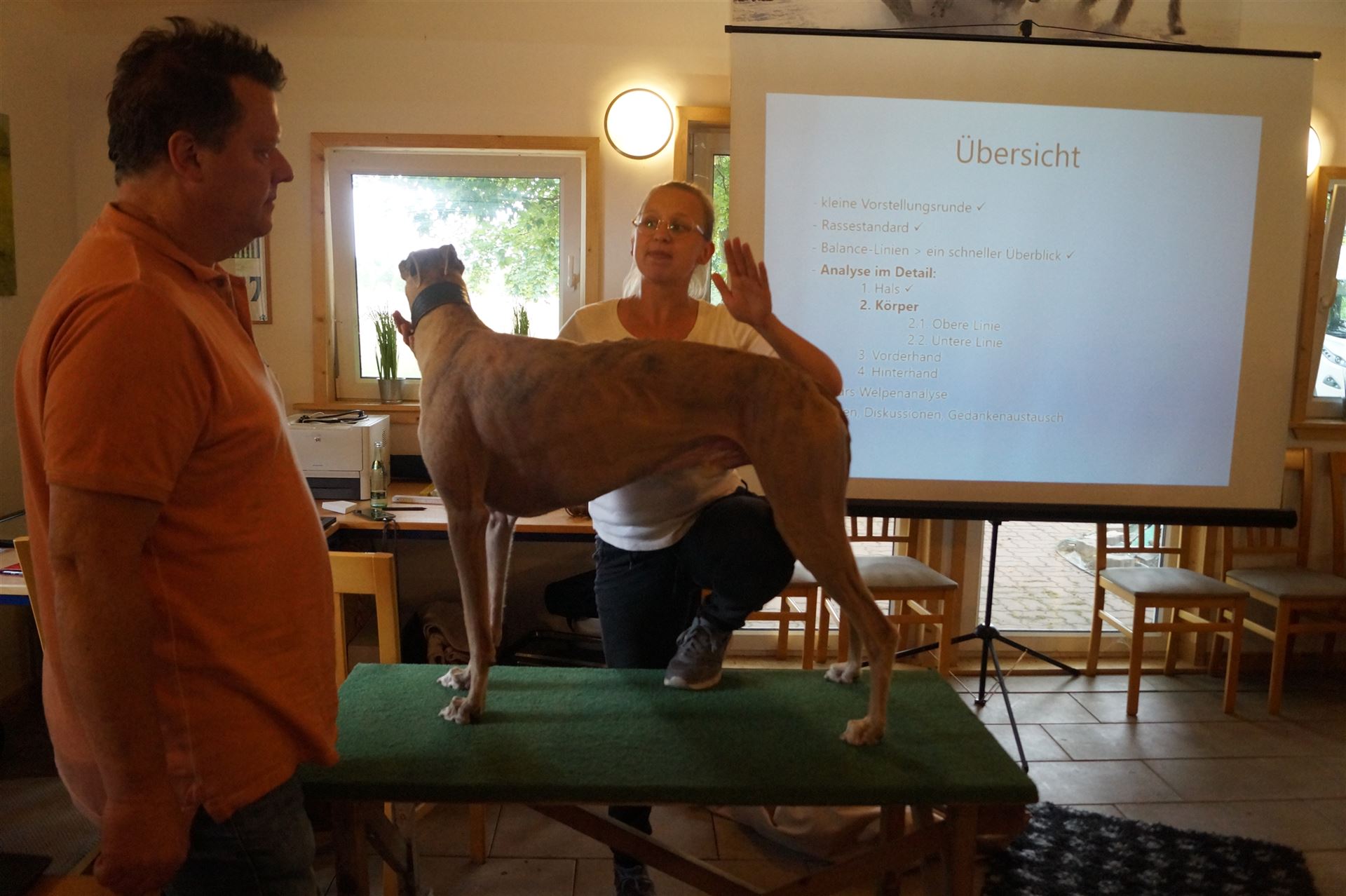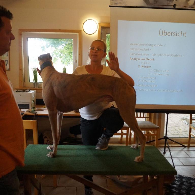 Pünktlich um 10 Uhr begann das Seminar am Samstag nach einer herzlichen Begrüßung. Nachdem alle Teilnehmer (welche vollzählig anwesend waren) , die Dozentin und die Assistentin sich kurz vorgestellt hatten, startenten wir harmonisch bei bester Laune. Der Vortrag war sehr gut Vorbereitet und alle Teilnehmer waren mit großem Interesse bei der Sache. Die Analyse und Beurteilung am Hund unter Anleitung der Dozentin war informativ und die Teilnehmer waren aktiv und mit viel Austausch bei der Sache. Alles in einem ein gelungener Tag rund um das Thema Anatomie. Die Verpflegung vom Hunderenn-Verein und das Team war sehr freundlich und belegte Brötchen und Kuchen wurden vor Ort angeboten. Nach einem gemeisamen Grillabend bei tollem Wetter und guten Gesprächen rund um den Hund, durften die Hunde den Tag mit einer spaßigen Runde Toben ausklingen lassen.
