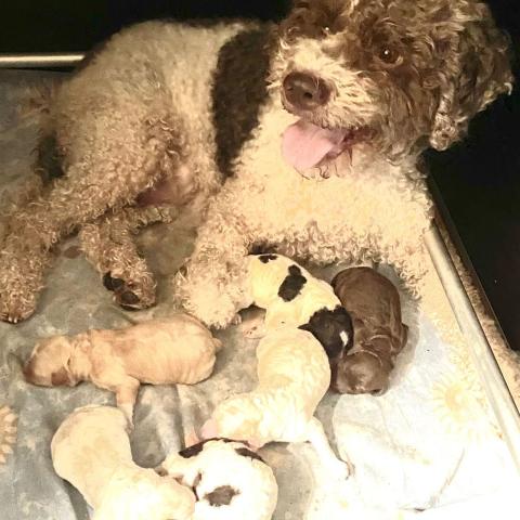 Unsere Hündin La Vita Unica Blaze of Glory hat nach dem Rüden Pino Lagottos Peak am 23. Juni 8 Welpen bekommen ( 6 Rüden und 2 Hündinnen).